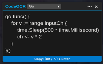 ส่วนขยายนี้รองรับแบ็กเอนด์ Go แบบท้องถิ่น ซึ่งช่วยปรับปรุงความเร็วในการถอดรหัสได้อย่างมากและมอบประสบการณ์การใช้งานที่ราบรื่น ในฐานะที่เป็นเครื่องมือฟรี CodeOCR ตอบสนองความต้องการของนักพัฒนาที่มองหาวิธีที่มีประสิทธิภาพในการดึงโค้ดจากแหล่งภาพ ความสามารถในการรับรู้ภาษาของมันทำให้มั่นใจได้ว่าการถอดรหัสไม่เพียงแต่รวดเร็ว แต่ยังเชื่อถือได้ ทำให้เป็นการเพิ่มเติมที่มีค่าในชุดเครื่องมือของนักพัฒนา